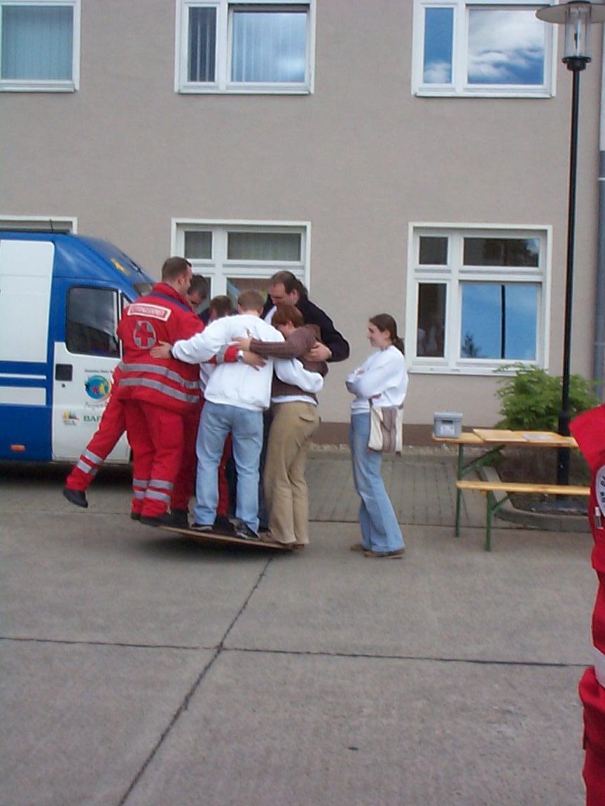 Erst gucken die Jungs vom Rettungsdienst nur...